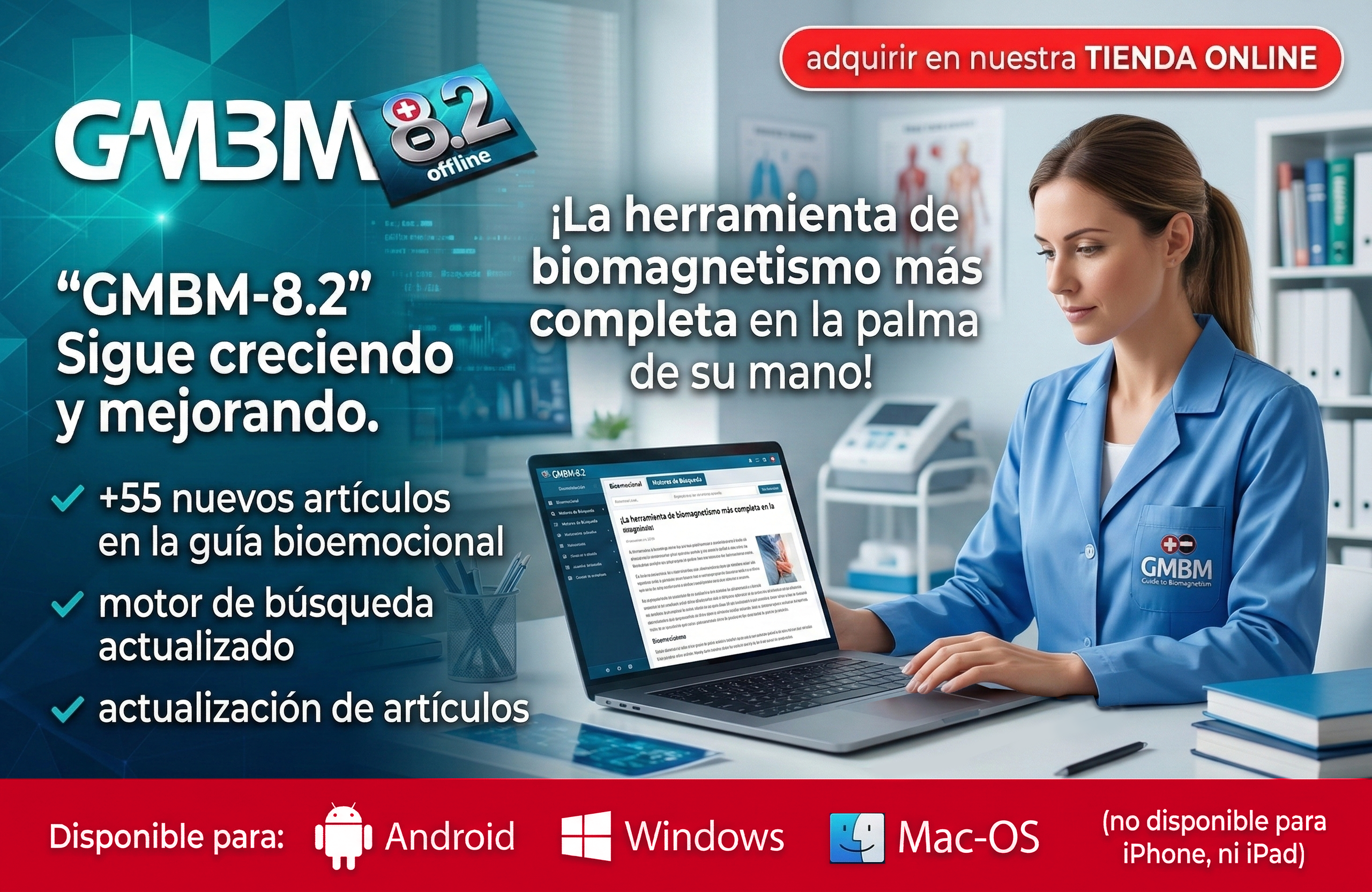 Esperamos que la nueva GMBM 8.2 le sea de gran utilidad para la aplicación del biomagnetismo. Puede enviar sus comentarios o sugerencias a nuestro email de Atención a usuarios.